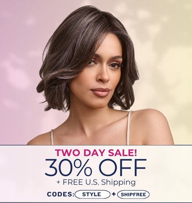 In the photos I'm wearing Wavy Day in Shaded Sand and Iced Sweet Cream. Wavy Day is the perfect style if you are looking for fuller waves in a length just past the shoulders length.