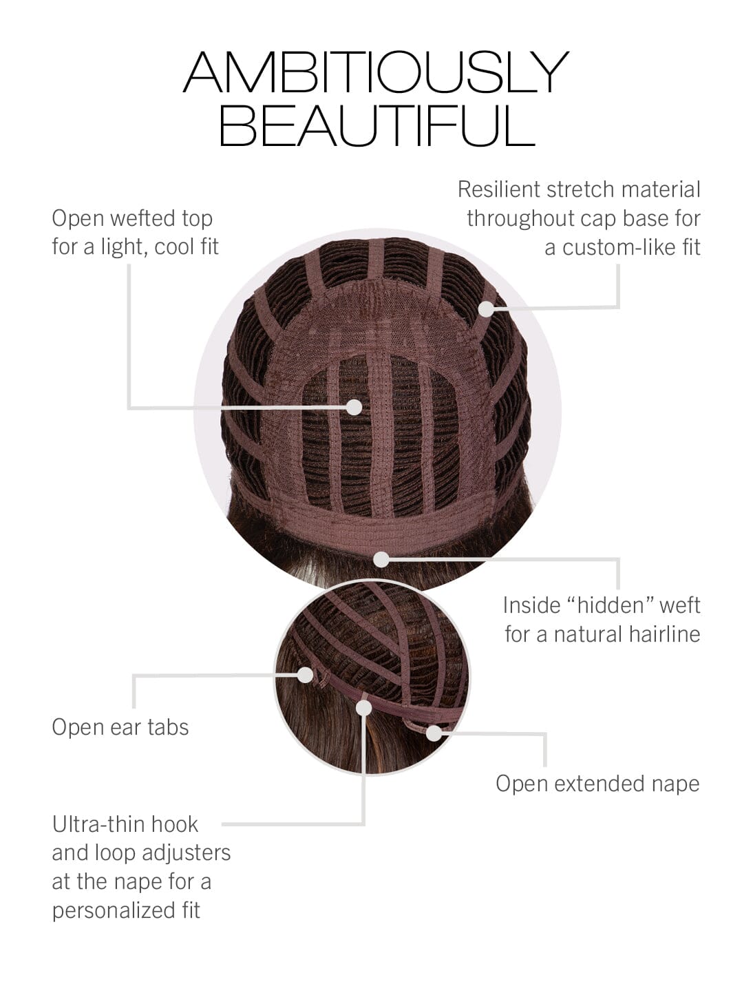 - Cap Design: Hidden Weft Front, Open Ear Tabs, Open Extended Nape, Ultra Thin Nape Adjusters (Hook/Loop fastener); Comfort Cap