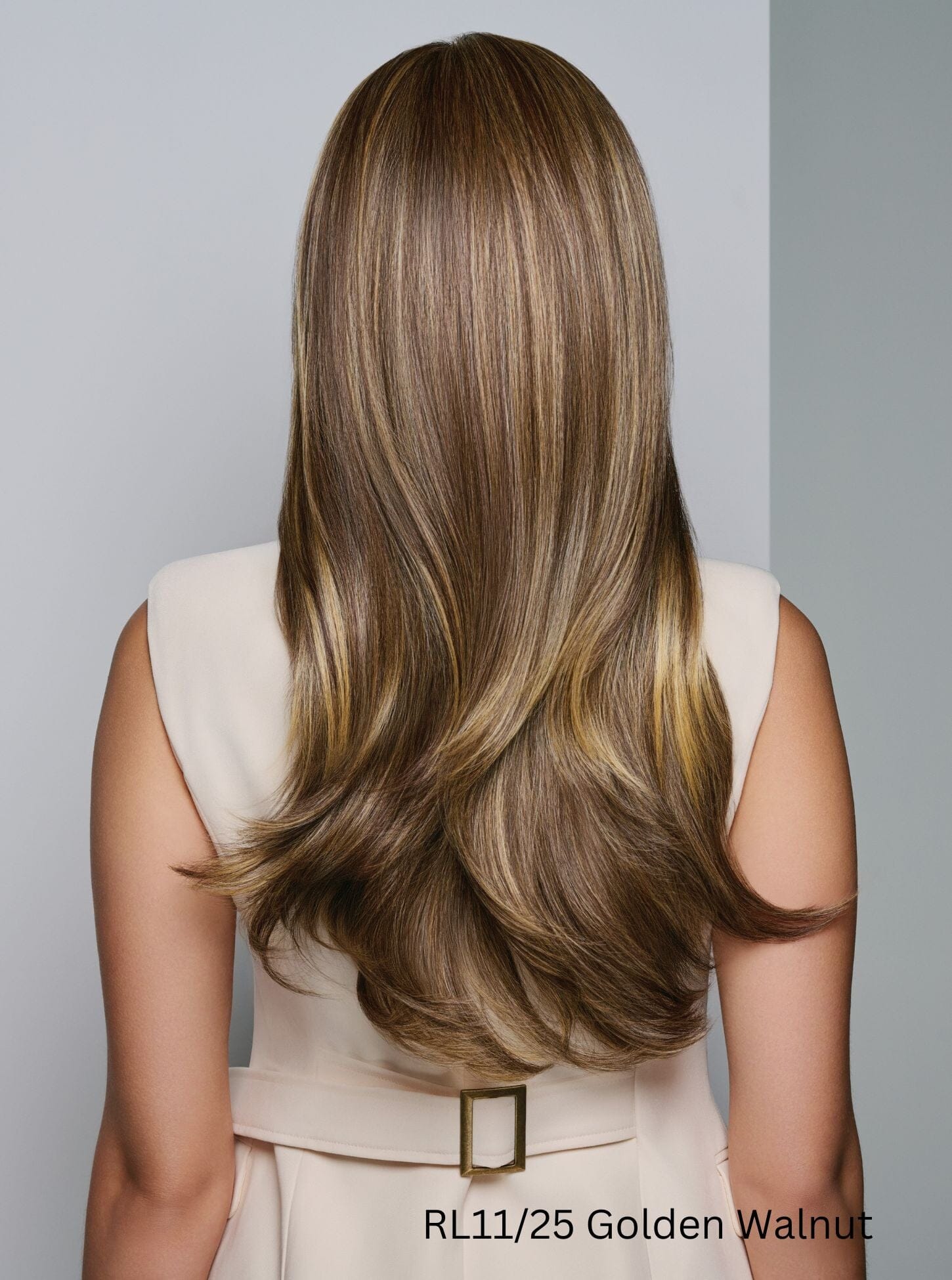 Experience timeless elegance with Raquel Welch's Feature Length Wig. This leading lady look boasts lush, soft layers that cascade in waves to mid-back length, capturing attention with its stunningly beautiful design.