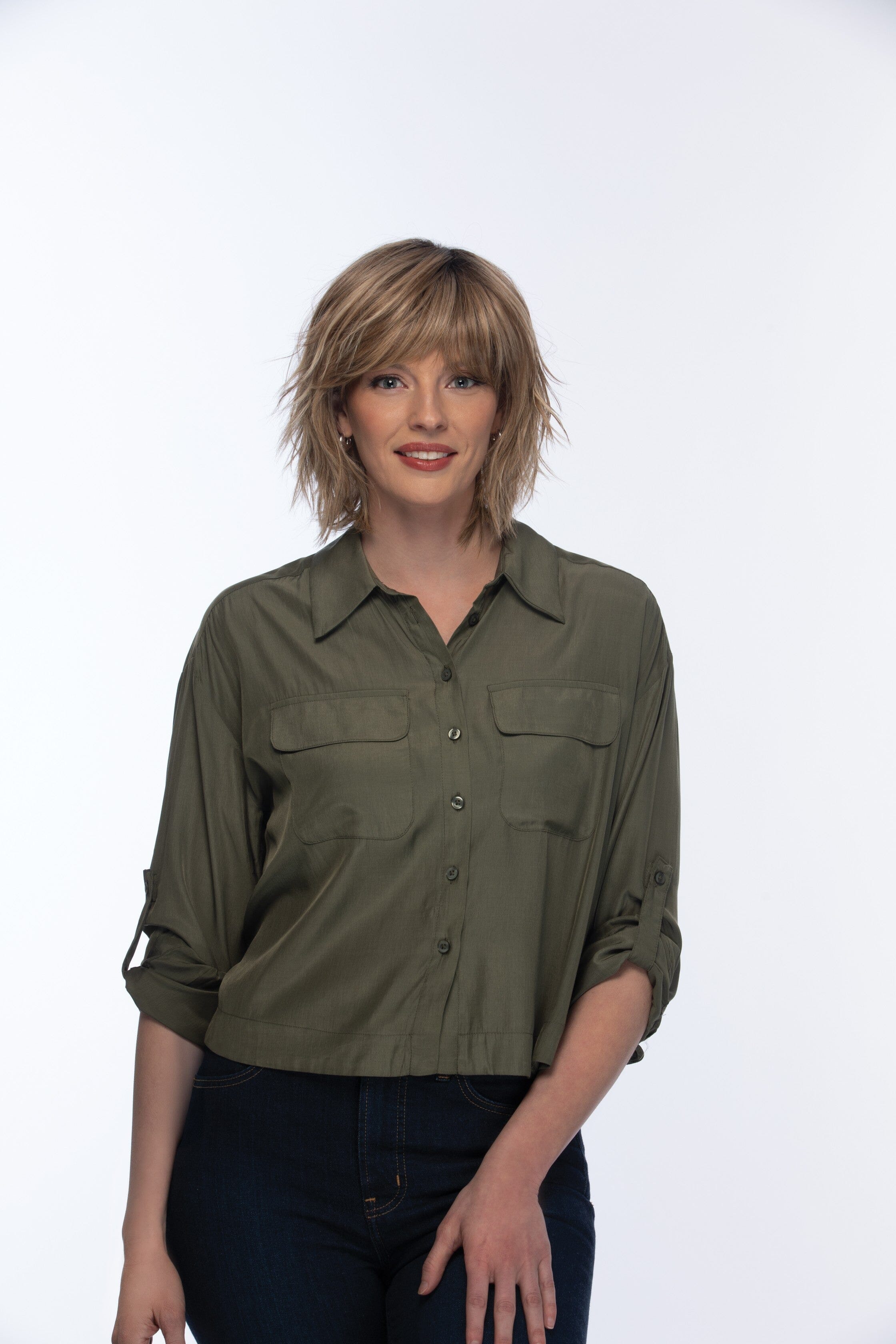 Hollis by Estetica is a new Heat Defiant Synthetic Wig by Estetica. Hollis features a 100% Hand Tied Monofilament Top and Open Cap with Velcro Adjusters. This choppy, layered style has texturized waves and wispy bangs.