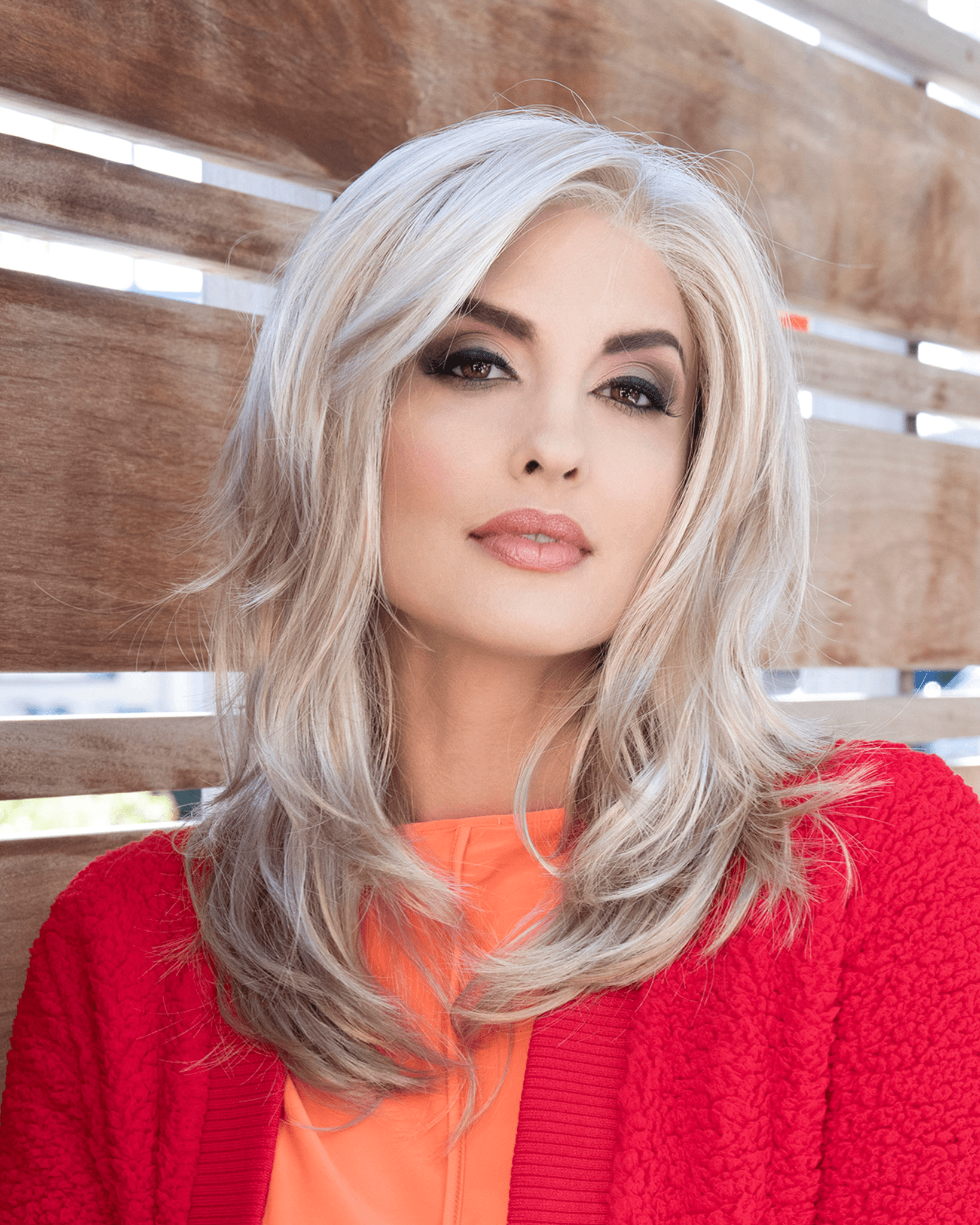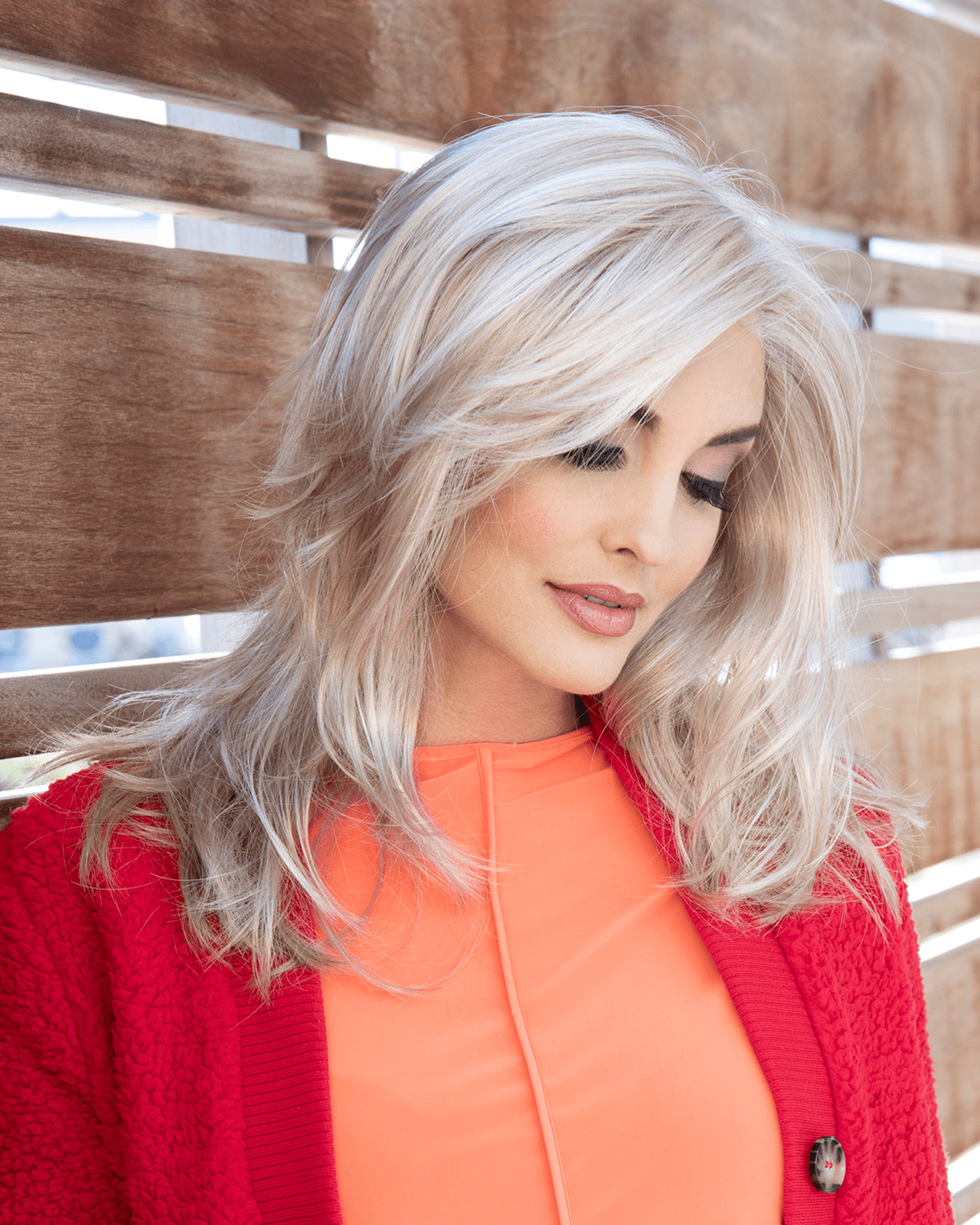 Fringe and face-framing layers provide light and airy texture and movement while complimenting face and head shape. With industry-leading features like lace front and the monofilament part makes this wig look ultra-natural and a JOY to wear.