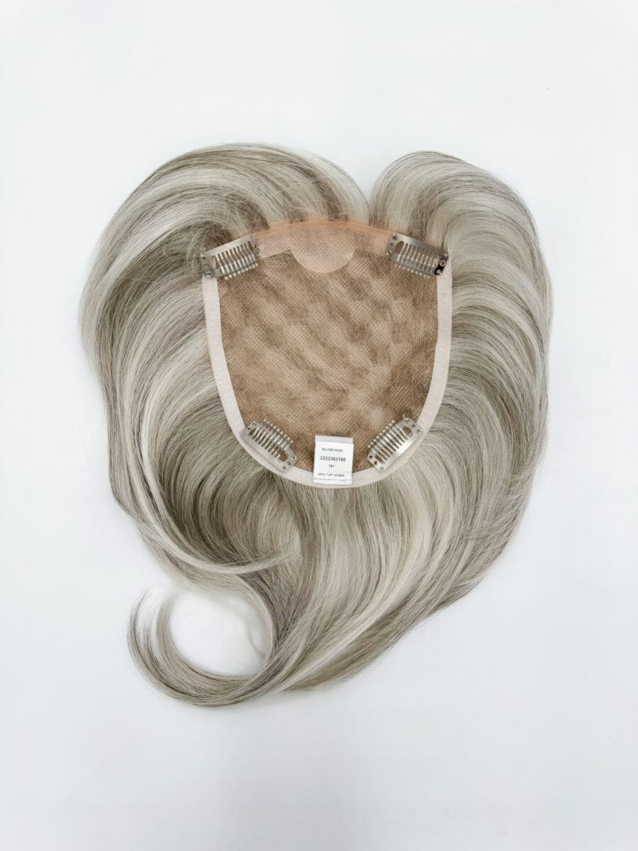 MEDIUM Top Piece (TP) MONO topper to be worn as a highlighter or filler. Covers top of head from fringe to crown area. This piece has a monofilament top. Rooted Colors are more expensive.