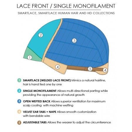 | Cap Construction: | Monofilament Top, Lace Front |