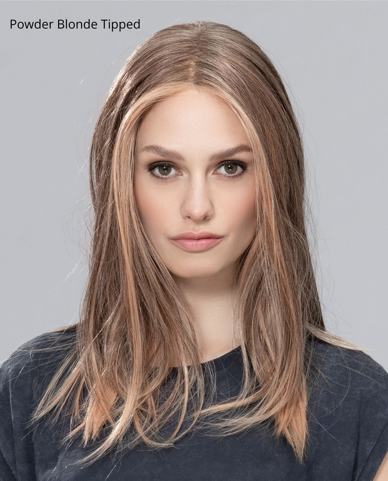 Sleek Mono Part is a premium, polished mid-length wig created with heat-friendly synthetic fibers that allow for versatile styling options, while still maintaining its refined and elegant appearance. The intricate lace front seamlessly blends for an invisible hairline, while the middle monofilament part adds to its natural aesthetic.