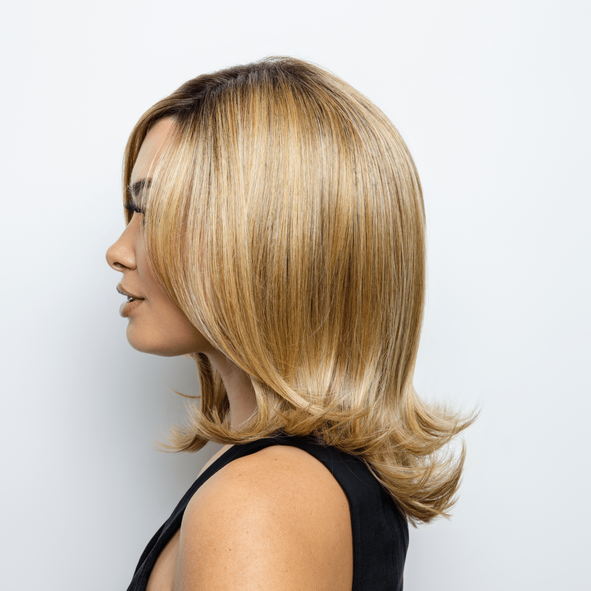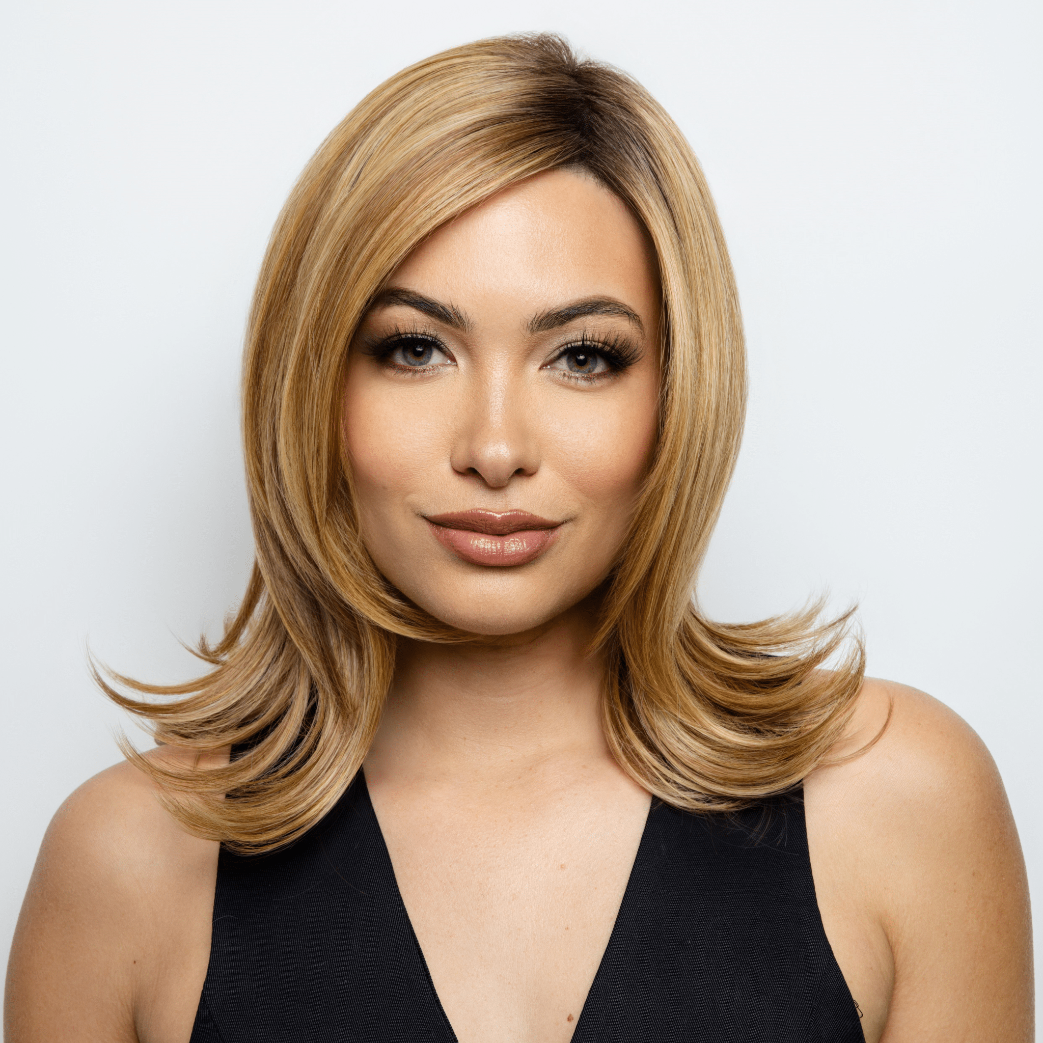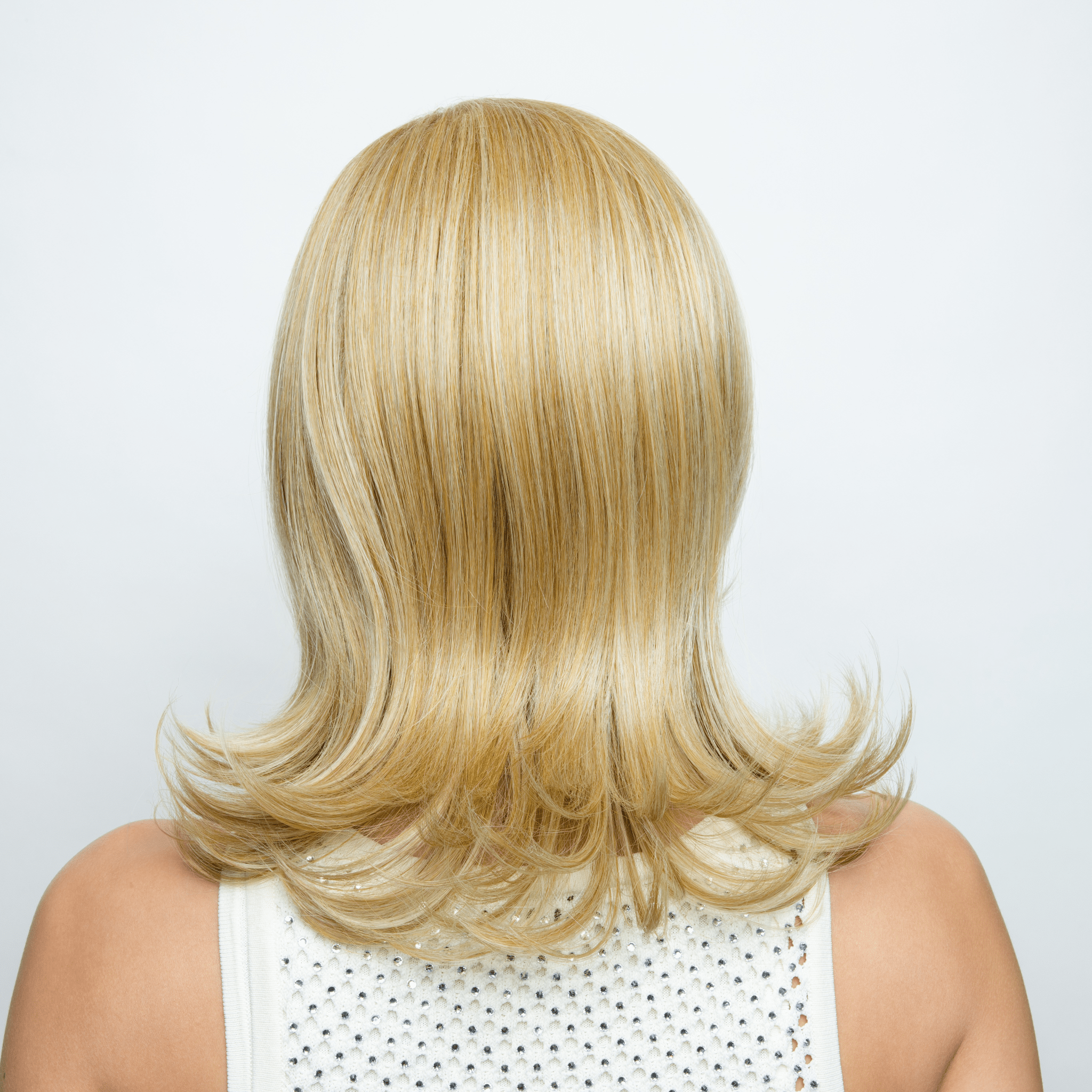 Sophia from the Alexander Couture Collection is a medium length heat friendly wig. This straight ready-to-wear wig is a fun, flattering, long-layers, and salon-inspired style. Sophia’s standout feature is its side part with face-framing layers, which beautifully frames the face and adds a touch of elegance. The bottom length of Sophia flips out from the shoulders to create a playful and youthful vibe. Embrace your inner fashionista and let Sophia elevate your look to new heights. Sophia has a lace front and lace part. Her lace front will give you a natural look with the lace part cap. Sophia’s cap construction has adjustable tabs in the back nape area to allow a more comfortable fit. The result is a comfortable fit with a natural look that is fashionable and easy to wear.