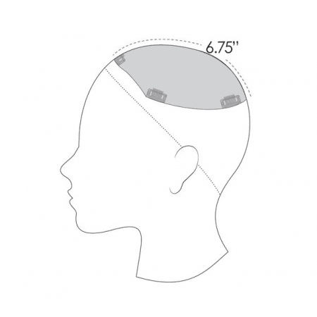 Worn on the crown, this heat friendly synthetic integrates with your own hair to add body and volume to thinning hair. Top Notch HD clip- in has a double monofilament top. Base Dimension: 6.5" x 6.75"; Application Method: Clip In; Length: 9" - 10.5"